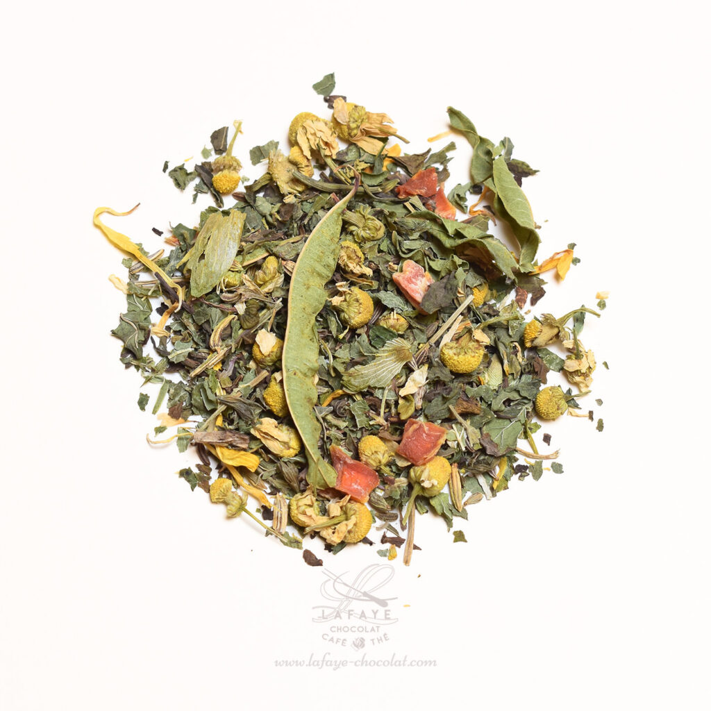 Infusion aromatisée sans théine, saveurs exotiques, fruits et fleurs.